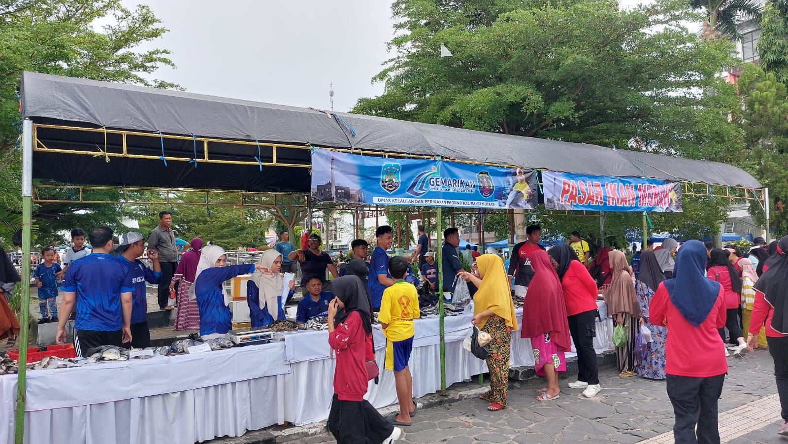 Nunukan, KTV – Pemerintah Provinsi Kalimantan Utara melalui program Pasar ikan murah menggandeng Dinas Kelautan dan Perikanan (DKP) Provinsi Kalimantan Utara menggelar kegiatan Gemarikan Pasar Ikan Murah di Pasar Tani, Alun-Alun depan Tugu Dwikora, Kabupaten Nunukan.