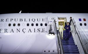 Jakarta, KTV – Presiden Republik Prancis Emmanuel Macron bersama Ibu Negara Brigitte Macron tiba di Jakarta, Indonesia, Selasa malam, 27