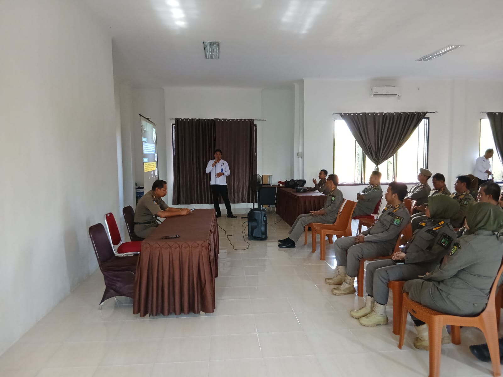 Selama kegiatan berlangsung, anggota Satpol PP terlihat antusias mengikuti materi yang disampaikan oleh narasumber dari BNN serta aktif dalam sesi diskusi.